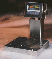 Plataforma de carga, celda, columna e indicador de peso en acero inoxidable.